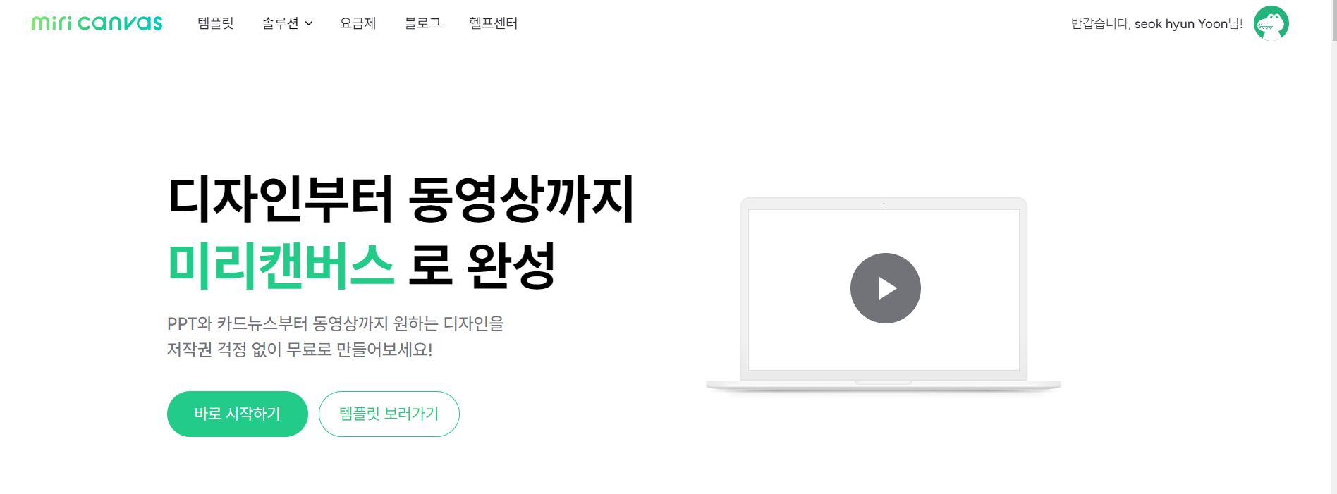 미리캔버스 홈페이지 메인화면