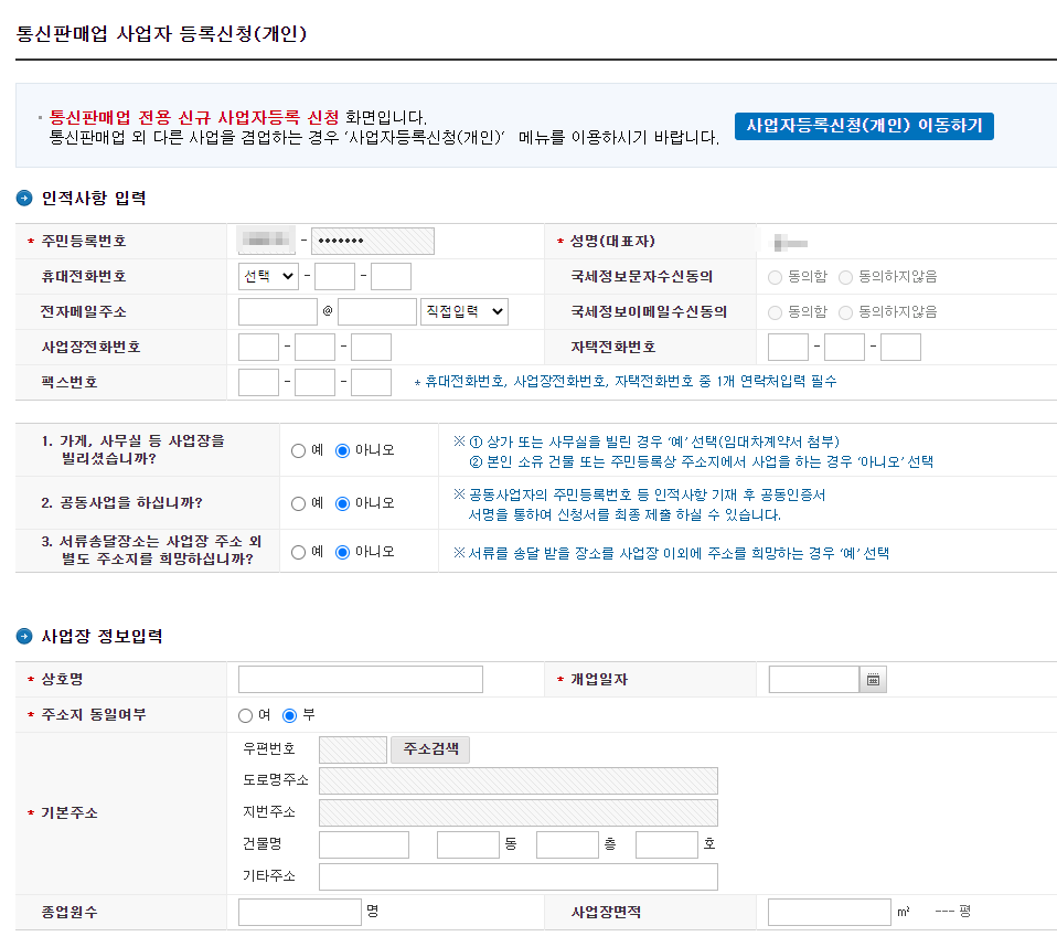 집에서 간단한 부업이나 통신판매업을 위주로 사업을 영위할 계획이라면