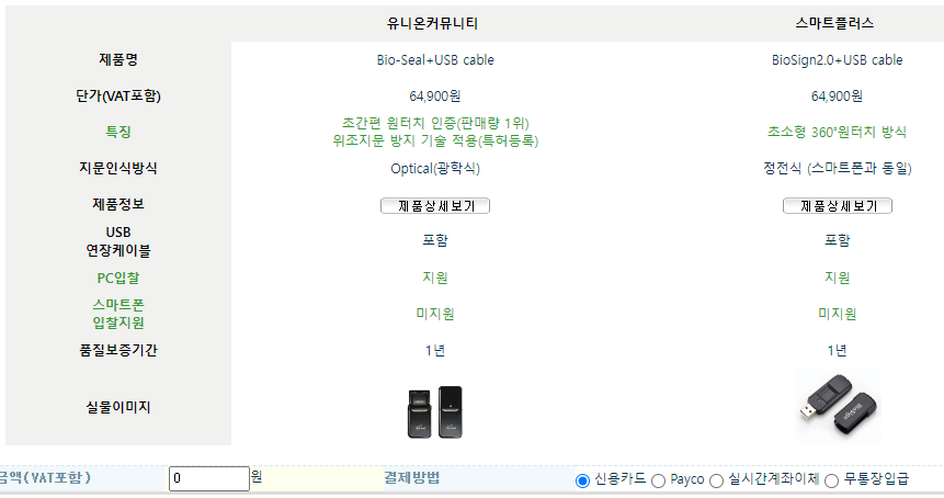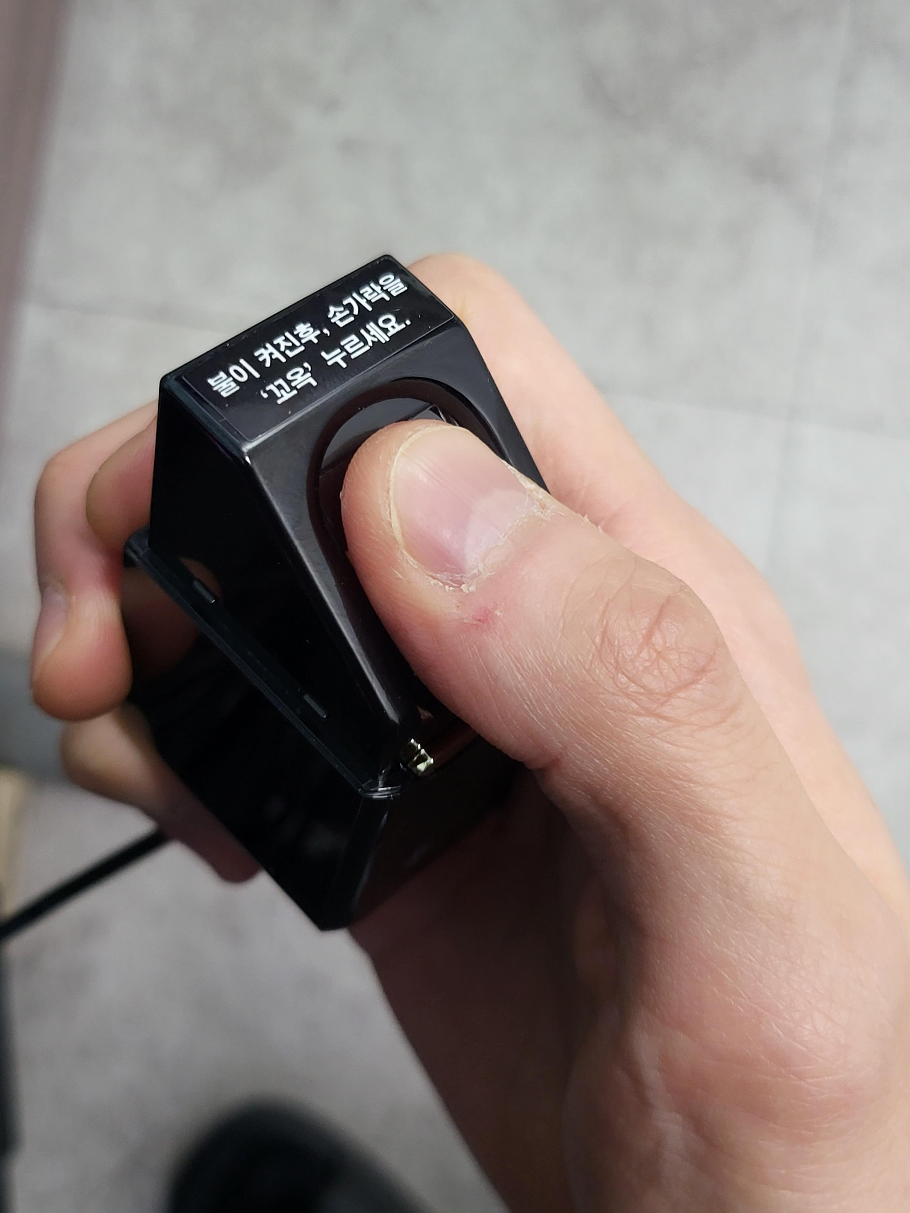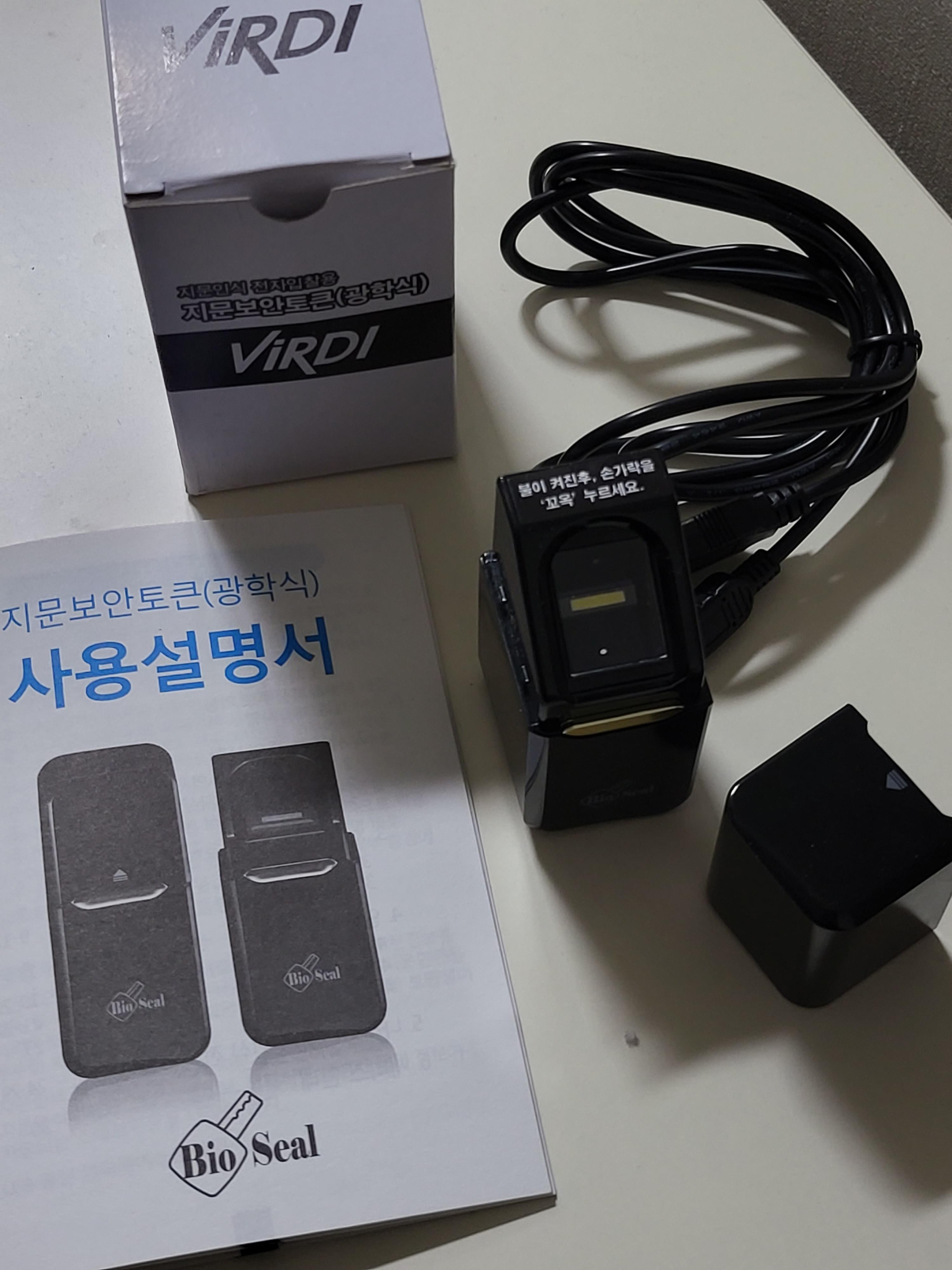 지문보안토큰기를 집에와서 구성품의 사진을 찍어 봤습니다. 본체와 USB케이블 그리고 사용설명서 이렇게 단촐하게 구성되어 있ㅅ브니다. 보안토큰기의 초기 비밀번호는 00000000 (0 8회)로 설정되어 있습니다.