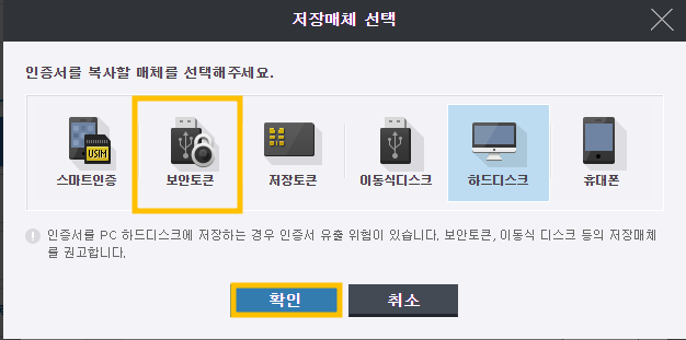 5. 지문보안토큰기에 인증서 복사하기