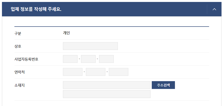 업체 정보 입력화면