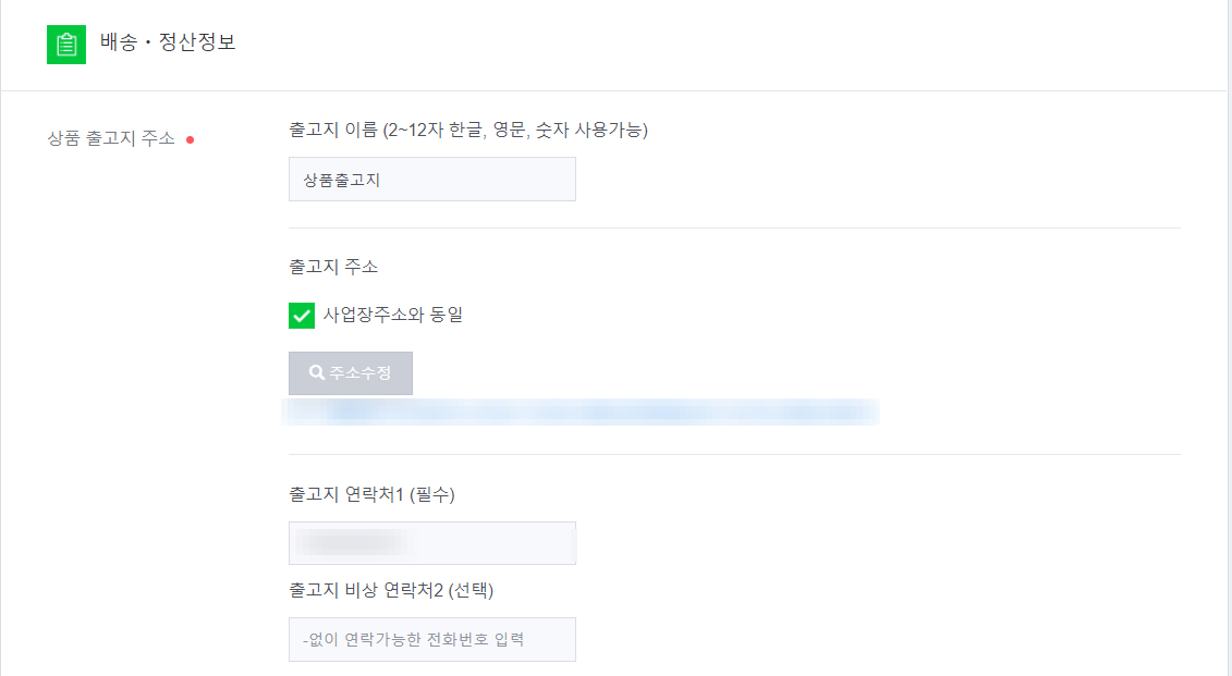 입출고지는 거주지 주소를 넣어주시면 됩니다.