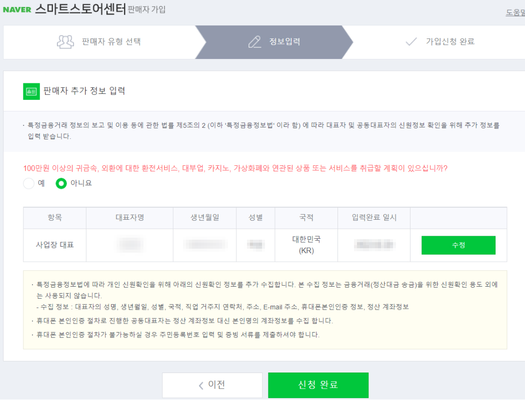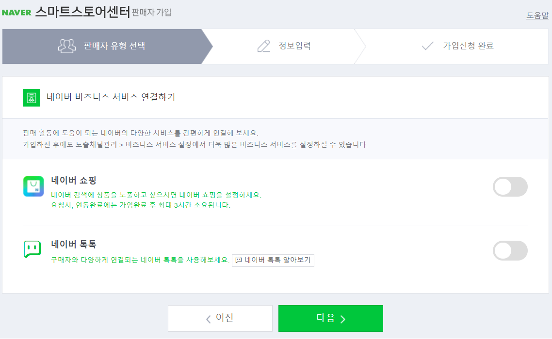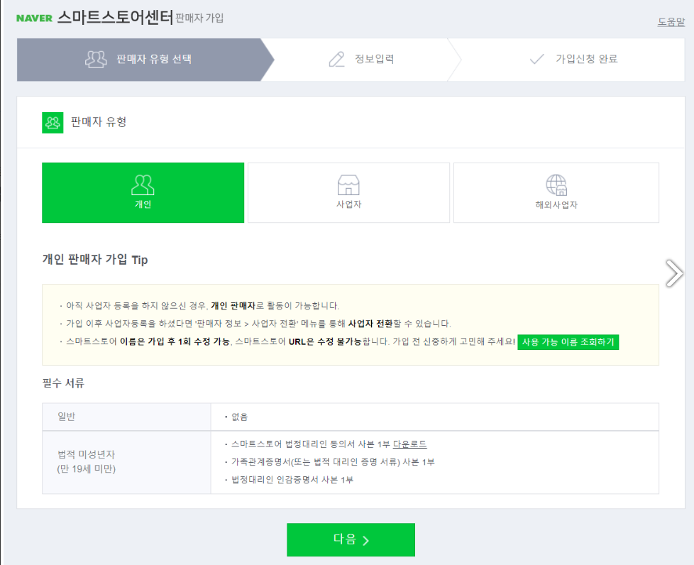 그래야 승인기간 없이 바로 스마트스토어 상점이 개설되기 때문에