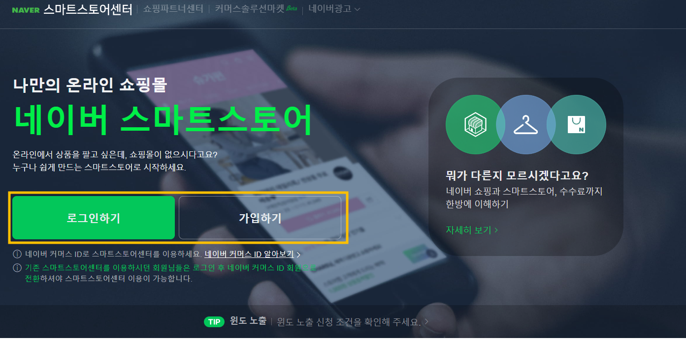 우선 네이버 셀러센터 홈페이지에 접속해 주신 후, 로그인 or 회원가입을 진행해주세요