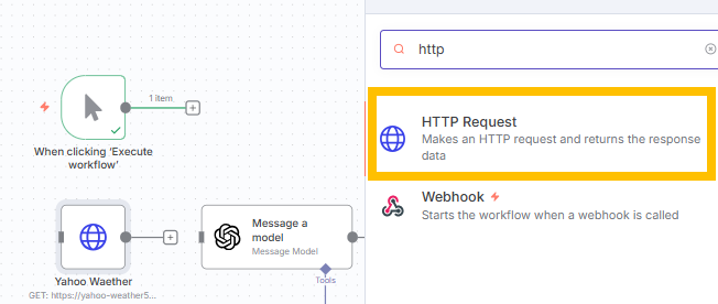 새로운 API 불러오기를 위한 + 버튼 > HTTP Request 를 눌러줍니다