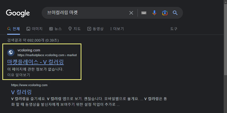 V컬러링 마켓플레이스 가입하러 링크를 클릭하고 접속하여